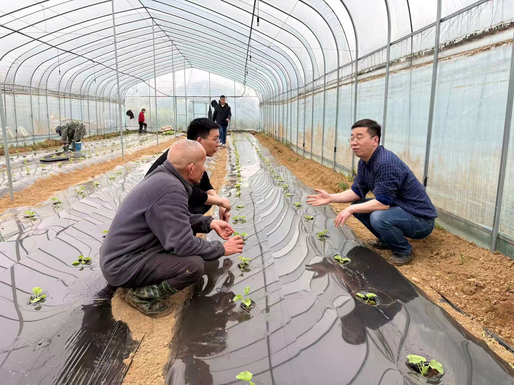 3月23日下午,省农科院经作所副研究员王运强带队赴我院梓山湖蔬菜健康栽培示范基地,开展春季蔬菜生产技术指导服务。我院果蔬研究所副所长杨硕、二级岗专家施仕胜一同参与。