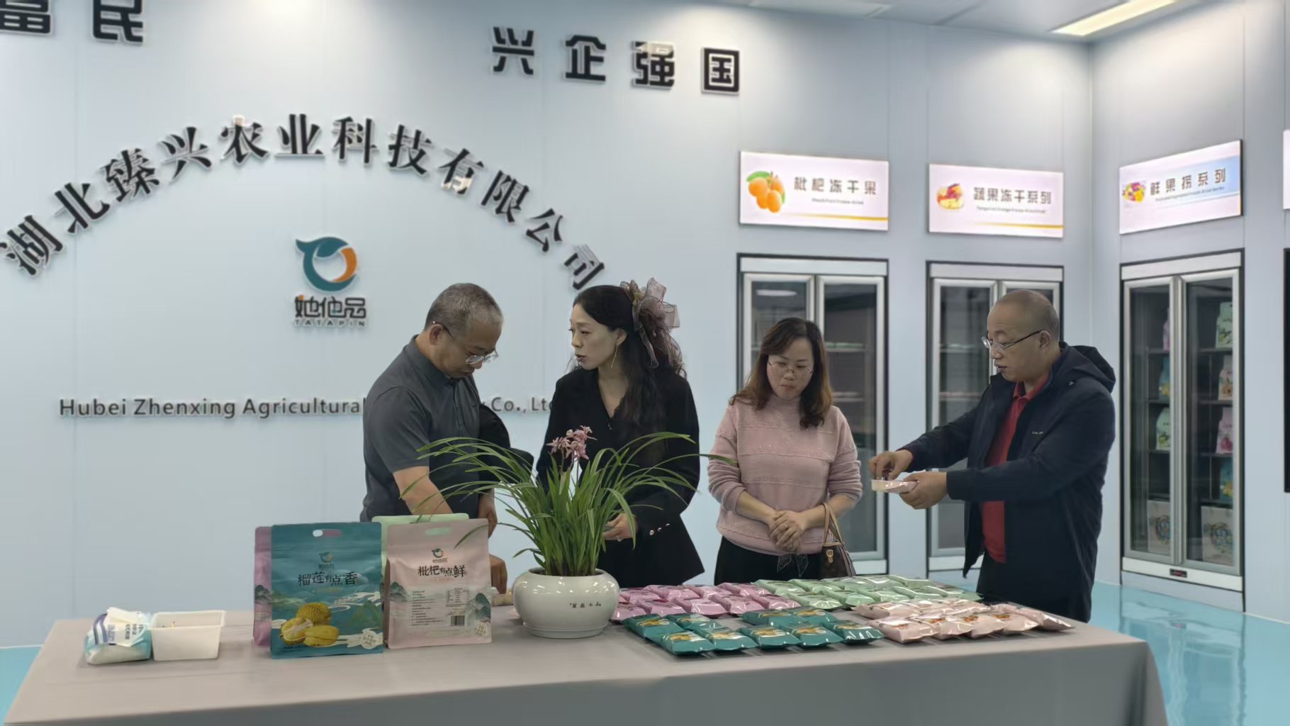 党委书记易元红带队,科研部、果蔬所及通山县科经局相关同志共同参加。调研组先后走访通山县格宁农业、万乐果业、湖北臻兴农业3 家重点企业,实地查看生产加工现场,详细了解企业经营规模、加工品类、市场销售及发展瓶颈。